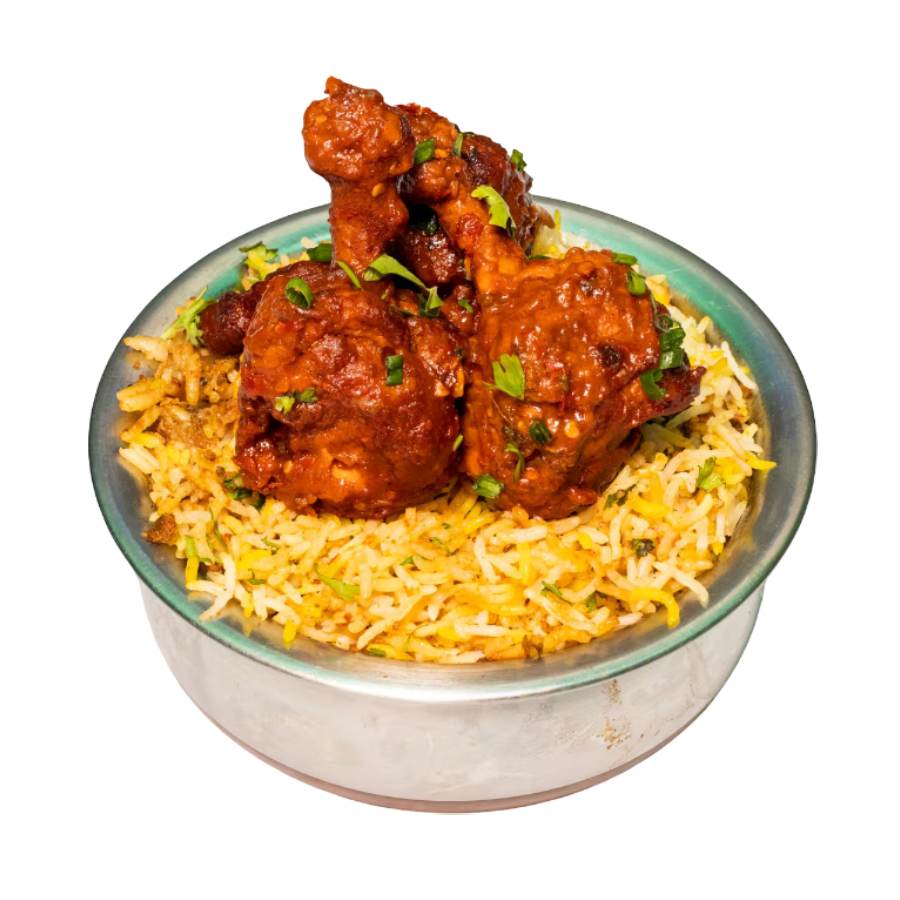 Fragrant basmati rice cooked with tender chicken pieces, aromatic spices, and herbs, served with raita and gravy.