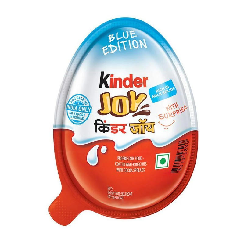 Kinder Joy Blue Edition Surprise Chocolate is made with a handpicked selection of finest quality ingredients for a rich and creamy taste. Each bite delivers smooth, indulgent chocolate that melts in the mouth with delightful flavours. A perfect treat to surprise and delight your child with every spoonful.