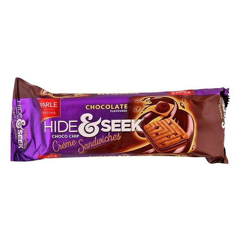 Parle Hide & Seek Choco Chip Creme Sandwich Biscuits are a delicious tea-time treat made with fine-quality ingredients, featuring rich choco chips and creamy filling that make every bite irresistible, while hygienic packaging ensures long-lasting freshness and delightful taste in every pack.