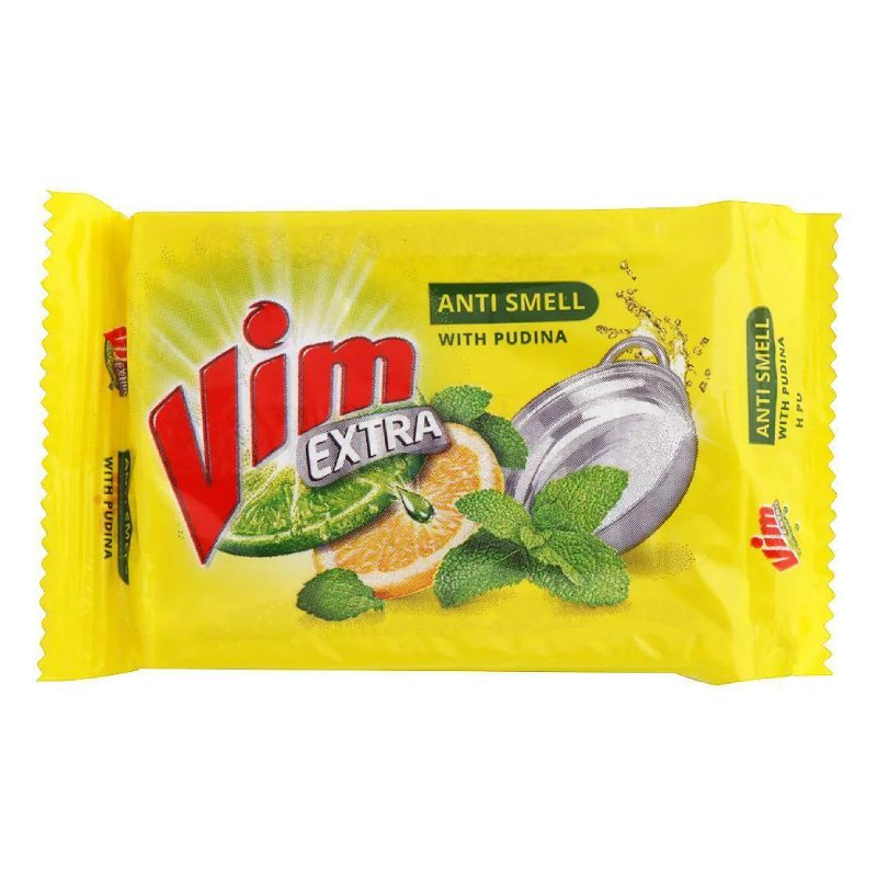 Vim Extra Anti Smell Pudina Dishwash Bar combines the power of Pudina and lemon to remove tough odours from utensils effectively. It offers excellent degreasing action, cutting through stubborn grease and grime with ease. Keep your utensils fresh and clean—buy this product online today.